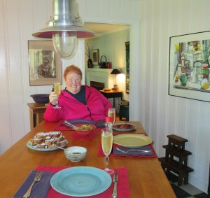 Birthday morning–champagne! the-best-french-toast Ever! country ham and potatoes.