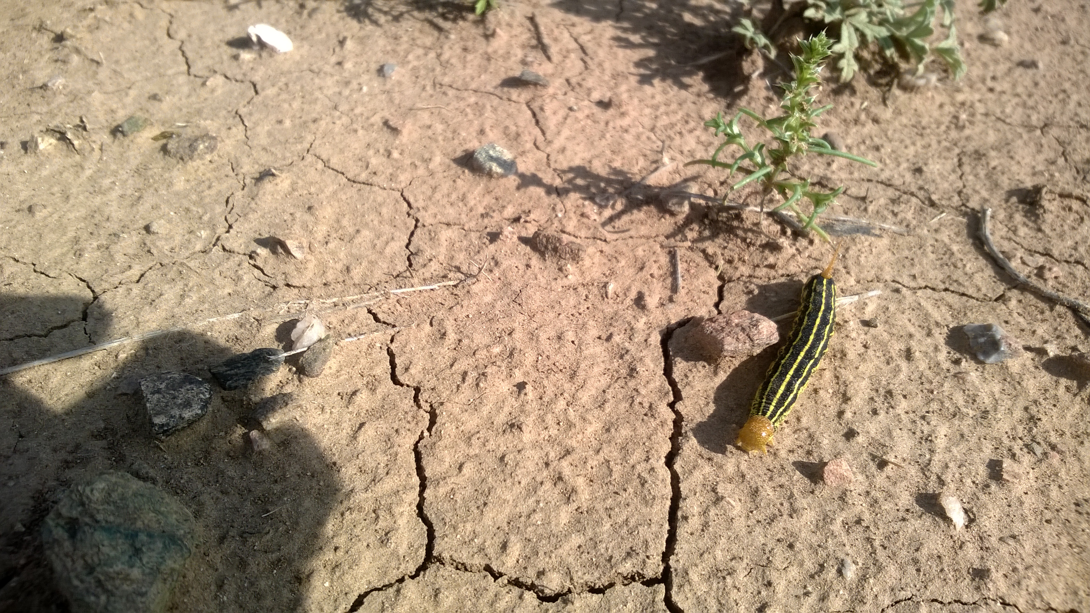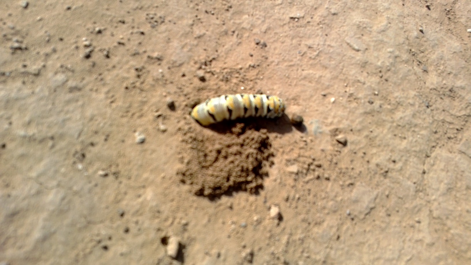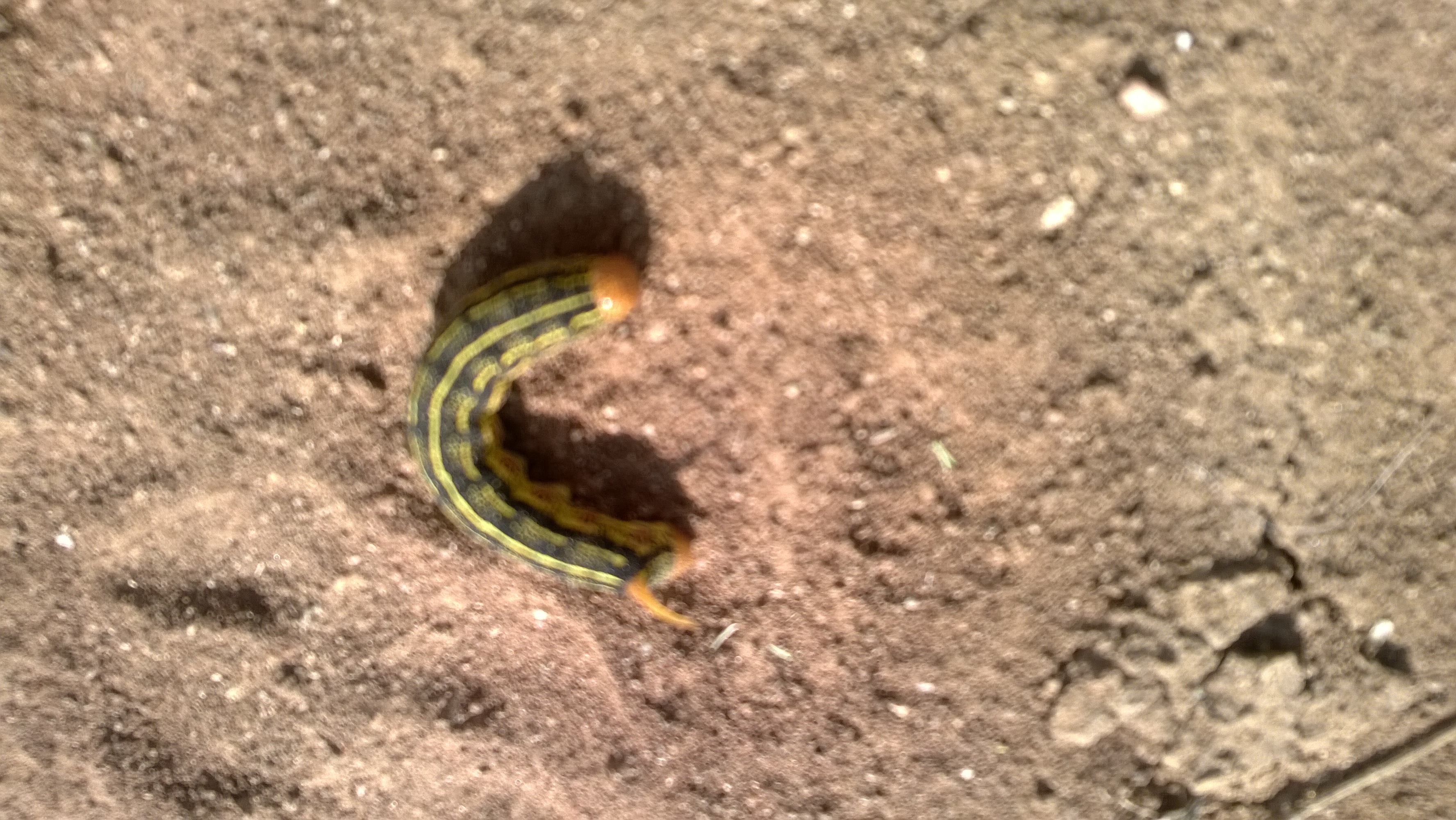 caterpillars pushing up out of the hard packed dirt road. It was a little creepy. The next day there were dozens and then hundreds migrating across the rutted road.