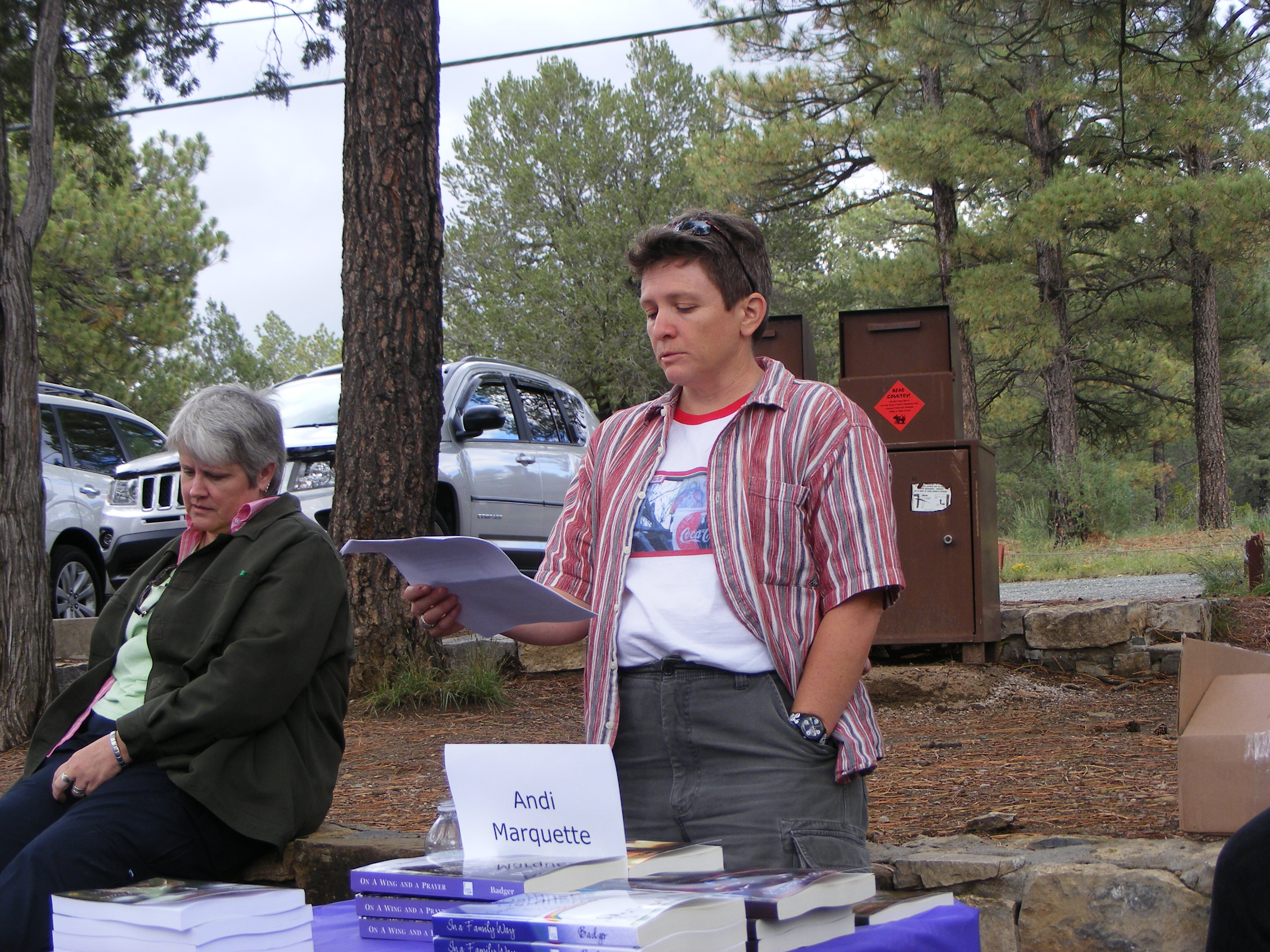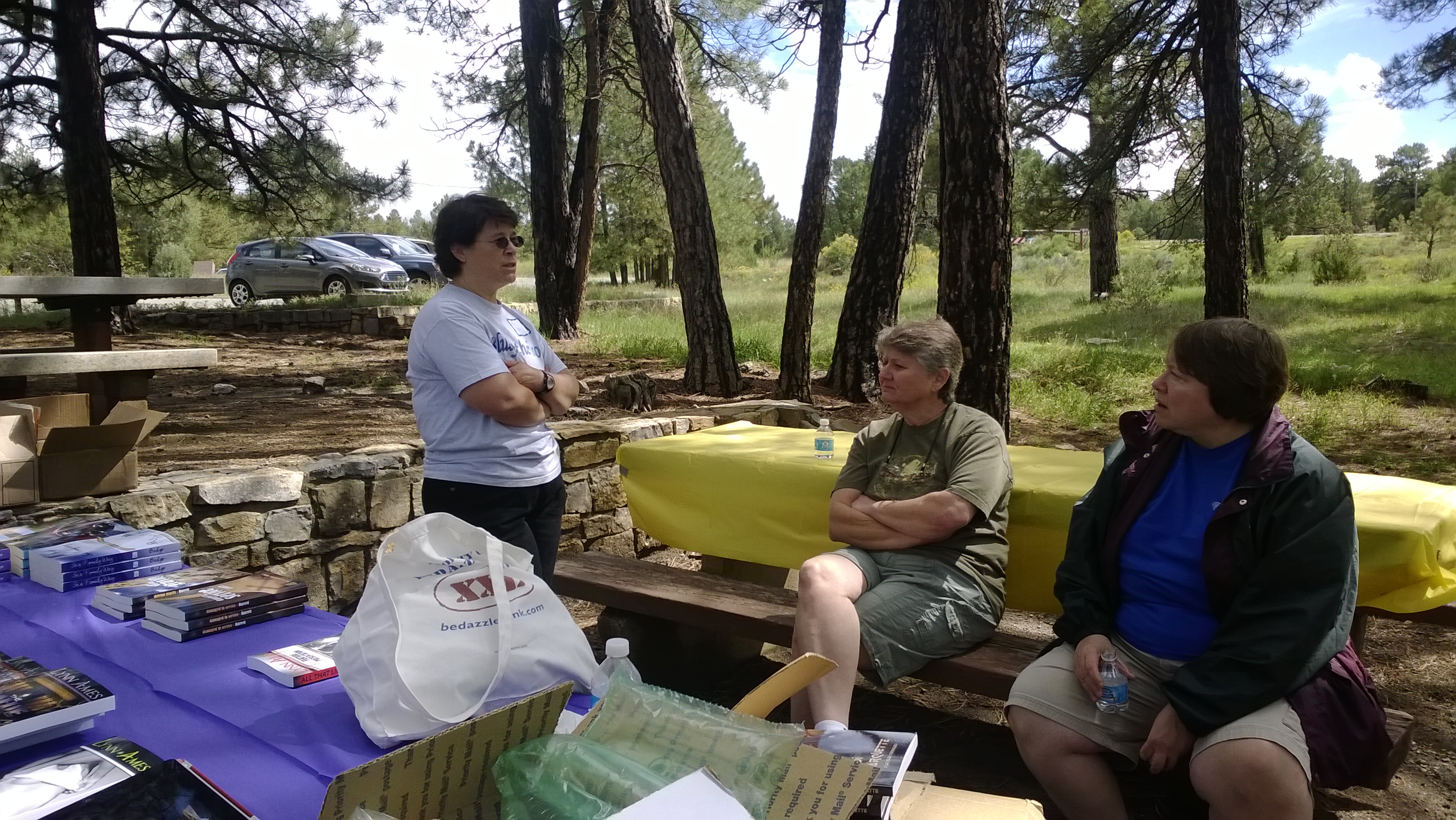 This is relevant only because nearly a year ago, Andi Marquette and I joked about her doing a book signing in the Duke city…and, well it grew from there into a picnic where authors grilled for readers. We agreed on a site in the Manzanita mountains just east of ABQ, and I hurried to reserve a site. As you might have guessed, picnic grounds were not in high demand in January or this weekend. But the wheels were set in motion. One by one we recruited other writers to join us.