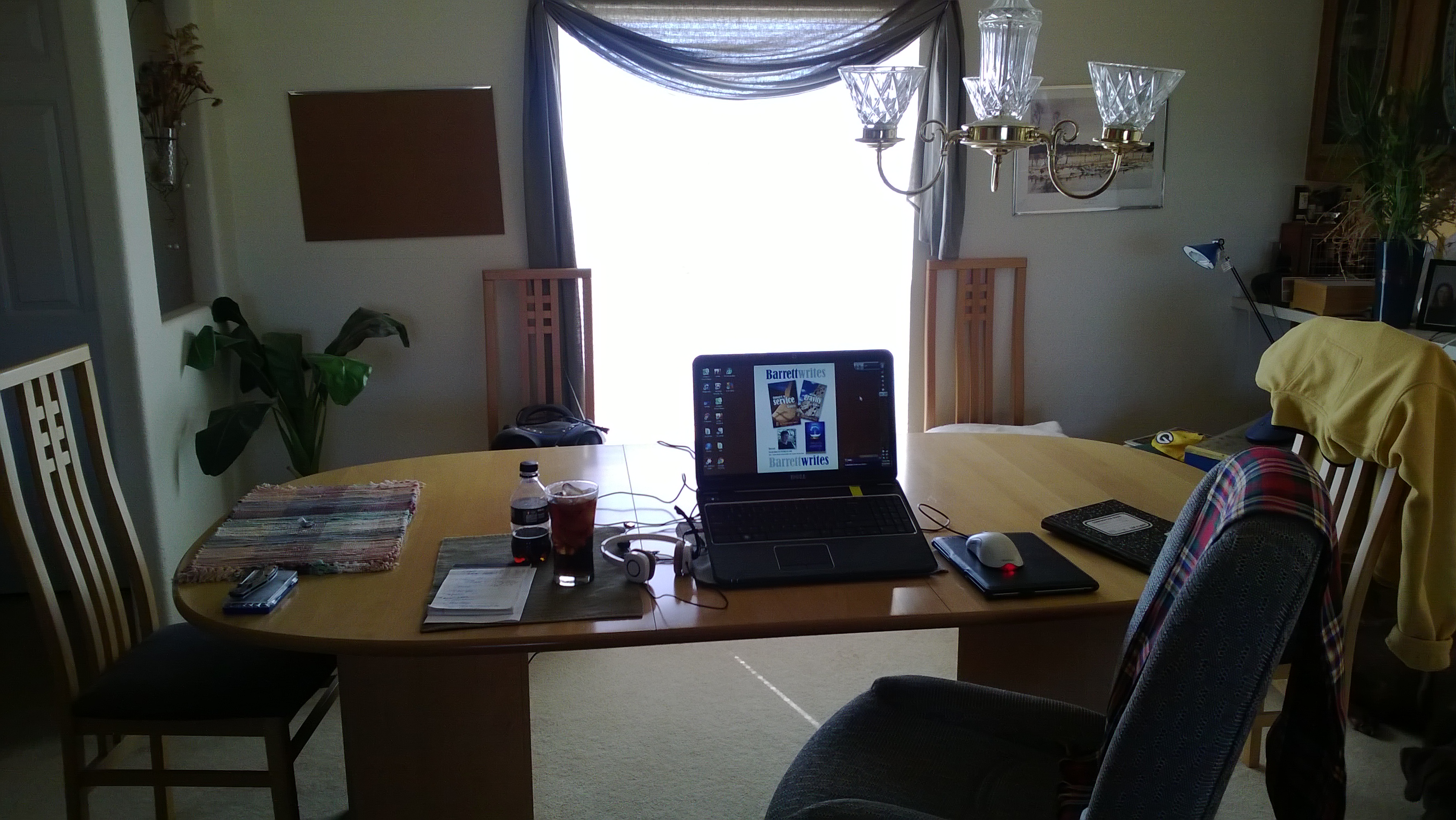 (okay, this is not really my desk. My office has a health department warning right now. This is where I write since the Dell tech left.)